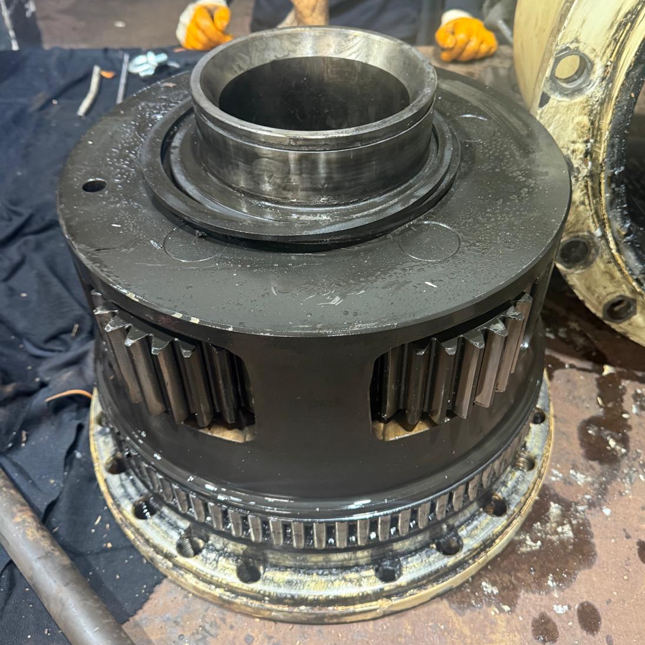 Crane hydraulic motor and gearbox overhaul process on board vessel in Turkey.